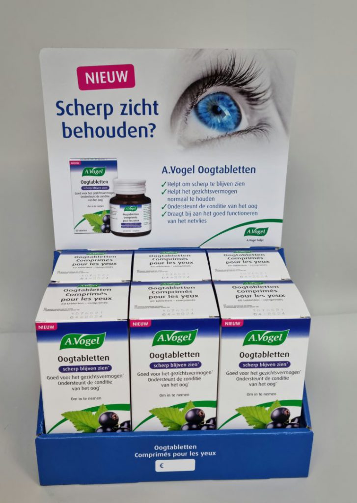 Home › Portfolio › A.Vogel display A.Vogel display Commissioned by A. Vogel (Belgium), we produced this small display for placement in pharmacies. This display presents the new product “A.Vogel eye tablets”, a food supplement to take with herbs and zinc. Previous Portfolio A.Vogel Hotspot display Next Portfolio Covid self-test display