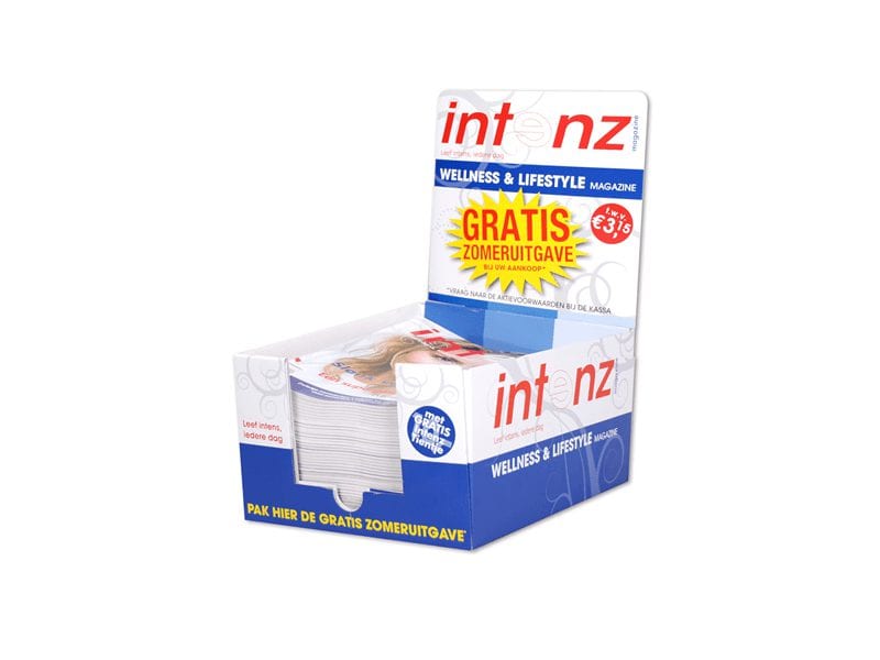 We have designed a display where magazines from Intenz can lie in