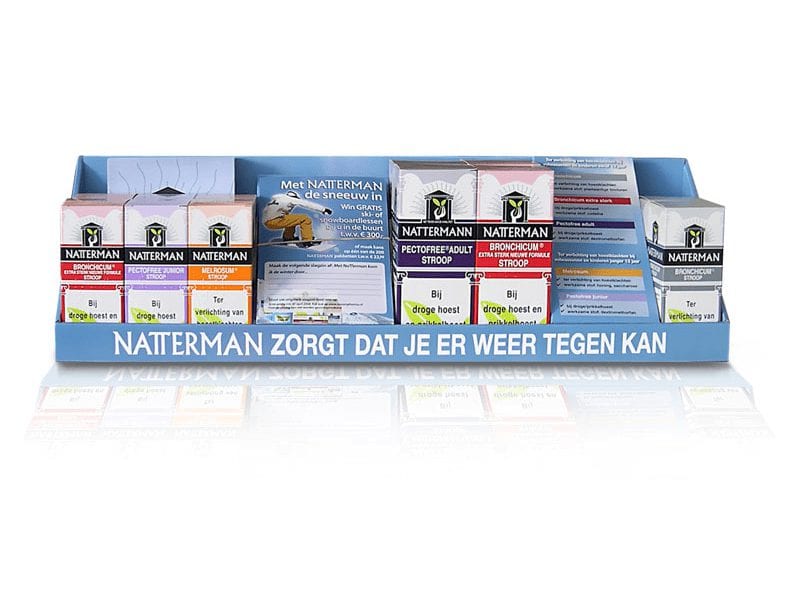 We designed and produced a display for Natterman that was shown in the Kruidvat. Natterman produces cough syrups for every kind of cough.