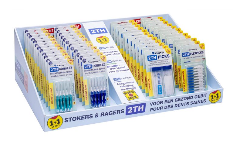 2TH Mondverzorging biedt interdentaalragers, tandenstokers en floss voor een stralend en gezond gebit. Deze innovatieve producten zorgen voor een uitstekende en eenvoudige interdentale gebitsreiniging en staan in week 3 2021 in deze display.