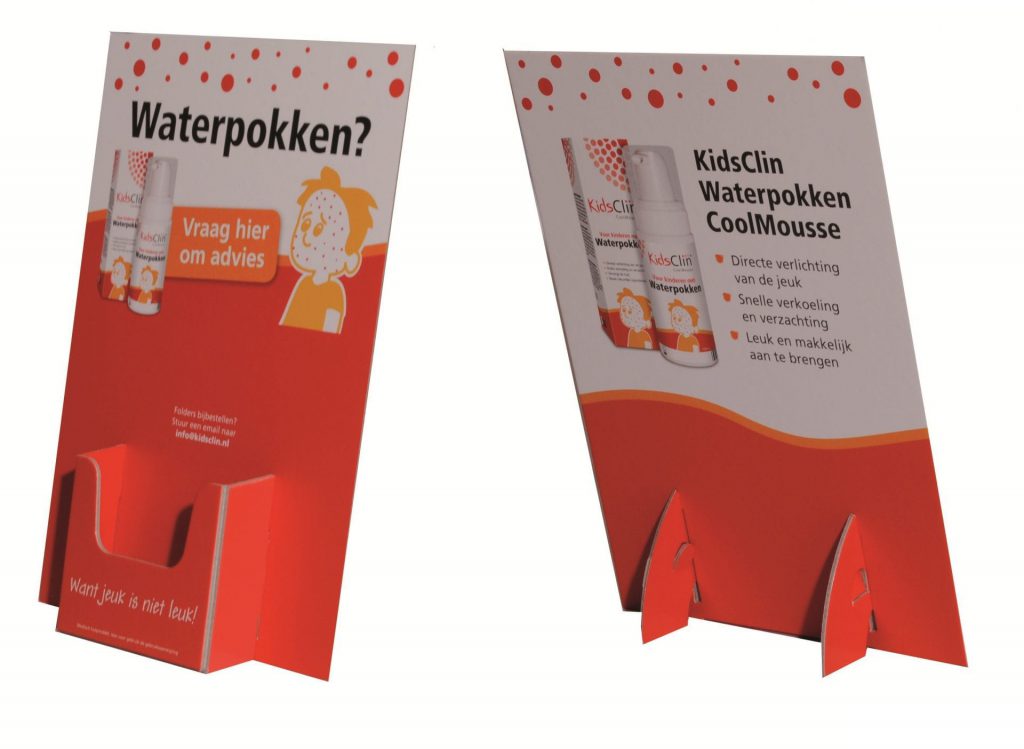 Home › Portfolio › KidsClin display KidsClin display We hebben een display ontworpen en geproduceerd voor KidsClin. Hierin zitten verpakkingen met hierin coolmousse te gebruiken bij waterpokken. KidsClin coolmousse geeft directe verlichting van jeuk. Volgende Portfolio A.Vogel display