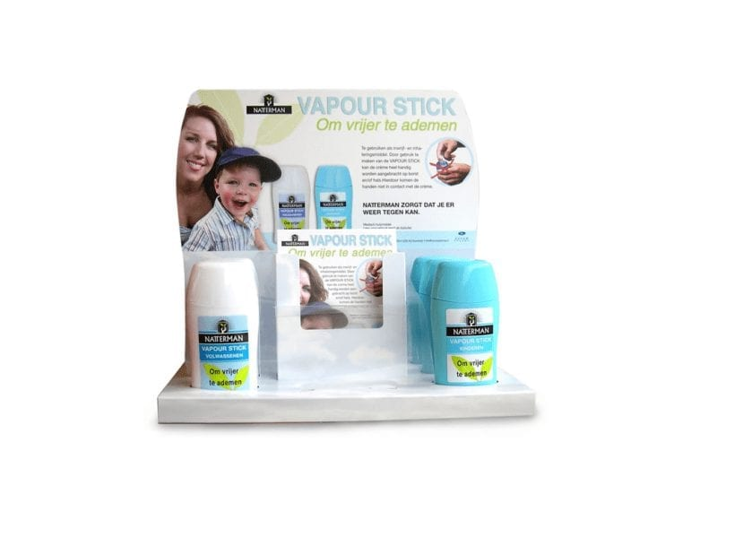We hebben een display ontworpen voor producten van Natterman: de Vapour stick. De Natterman Vapour Stick is er voor een vrijere ademhaling. De Vapour Stick voor kinderen biedt de mogelijkheid om de borst of hals in te smeren. Tevens biedt de Vapour Stick ook de mogelijkheid om te worden geïnhaleerd.