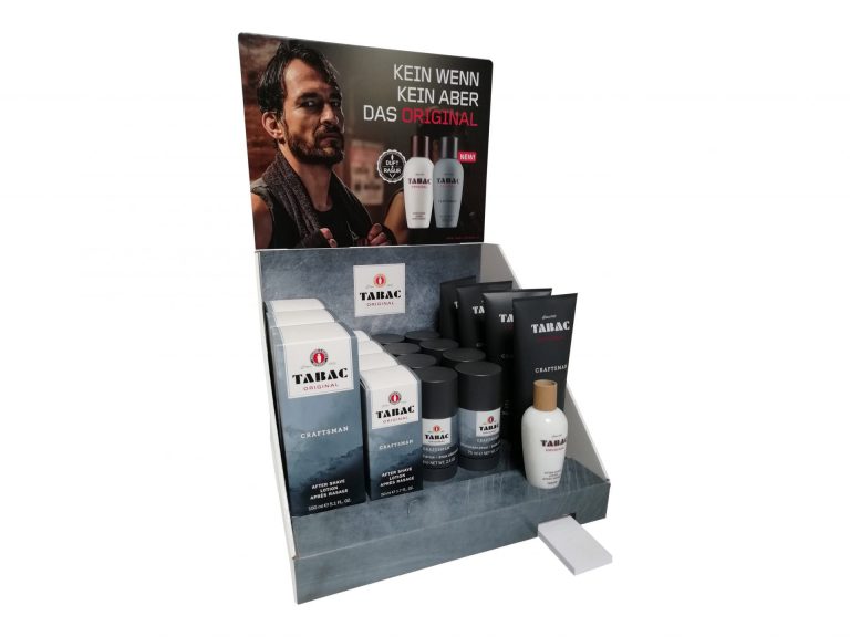 Tabac display, ontwerp en productie door XCJ reclameproductie voor Mäurer & Wirtz